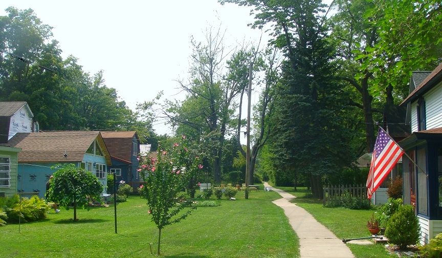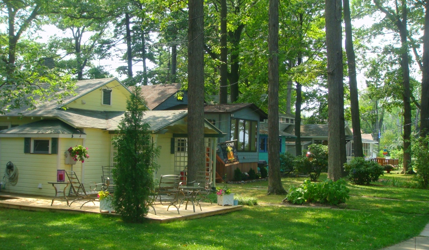 Sunset Island forms the northern border of Wilson Harbor. Without it there would be no harbor as we know it. This enchanting island retreat is primarily accessible by boat. A less than five minute trip at that. The cottages line the harbor and lake side with a path running through the middle of the island. At the eastern wider end of the island is a large common area for games, picnics or whatever. There is a unmanned mini store / library where items are paid for on the honor system by